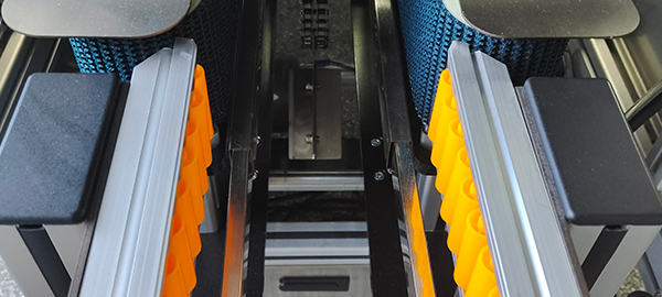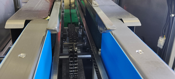 将输送线上的纸盒有意识地依次送入封盒机,封盒机每封一个纸盒送出后,智能输送机自动送入下一个纸盒进入封盒工位